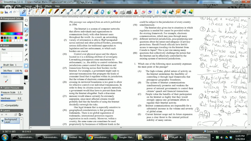 This is a 50-minute recording of a tutoring session I did in which I explained how I approach the Reading Comprehension section of the LSAT.
